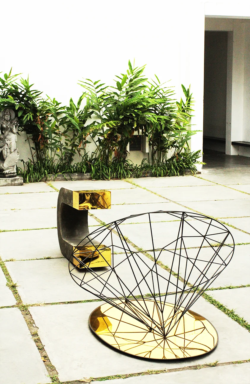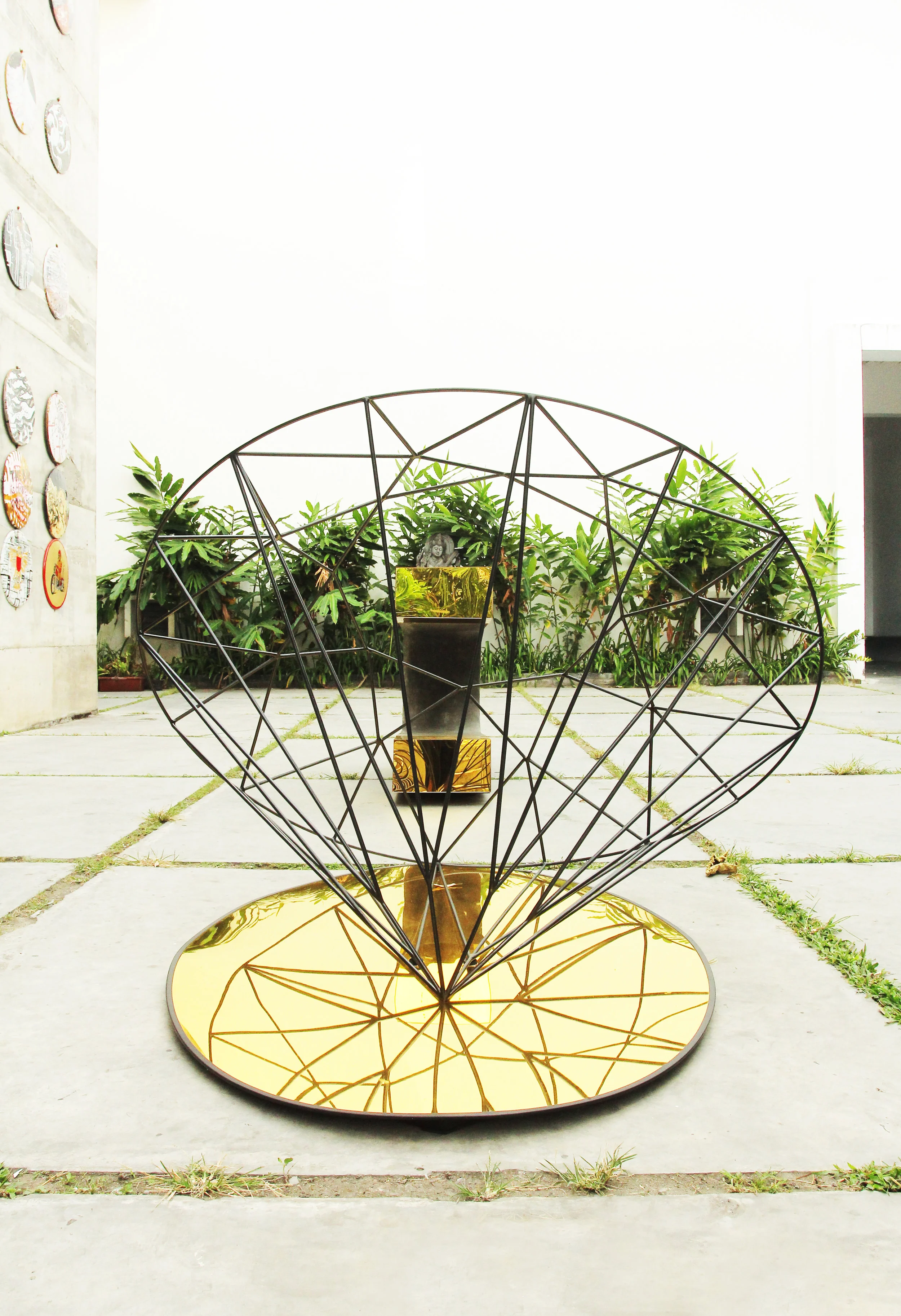 Steel, concrete and gold mirror acrylic. Size: 400cm x 170cm x 120cm (2017)